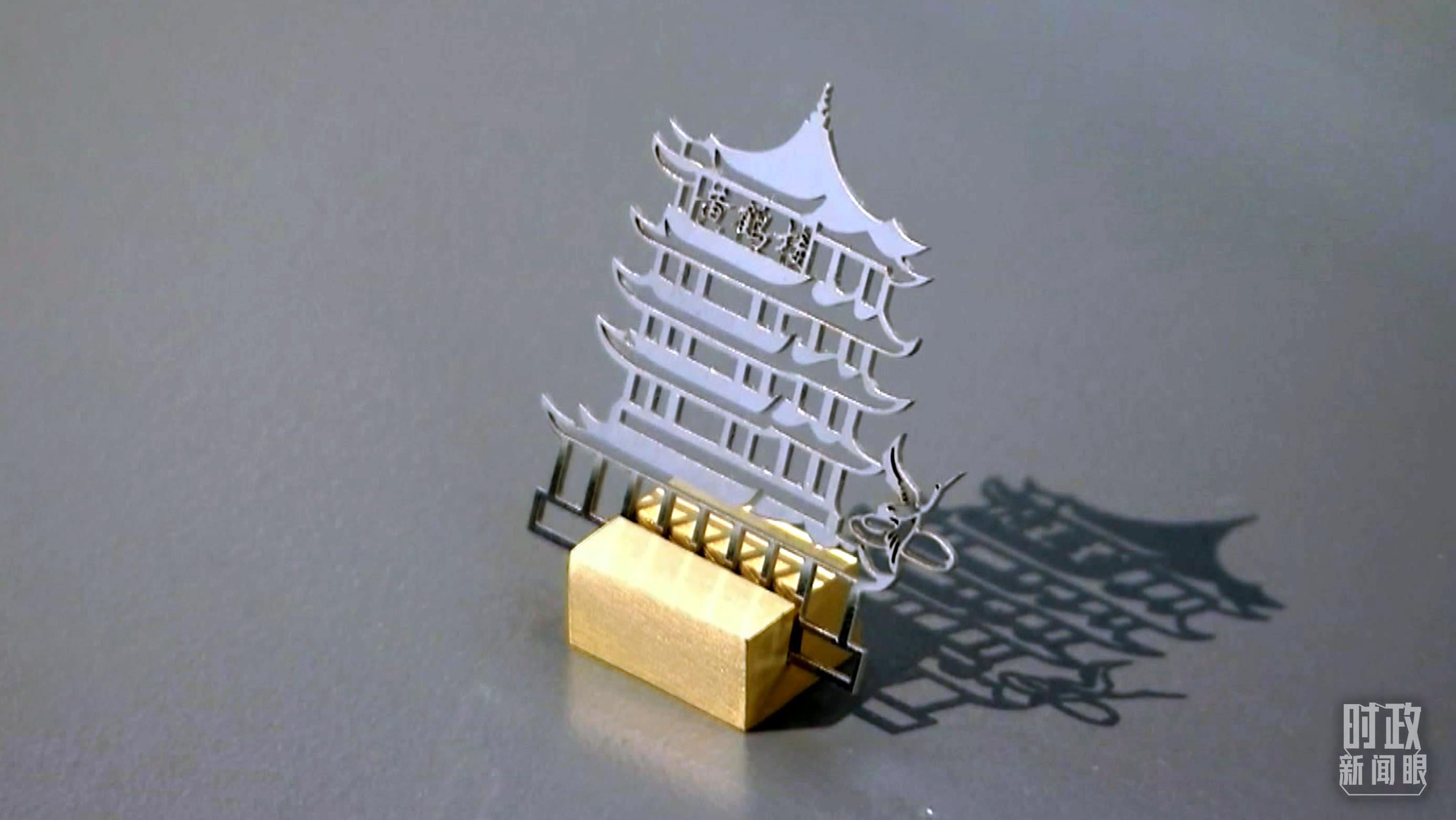 △華工激光製作的“黃鶴樓”模型。(總台央視記者段德文拍攝)