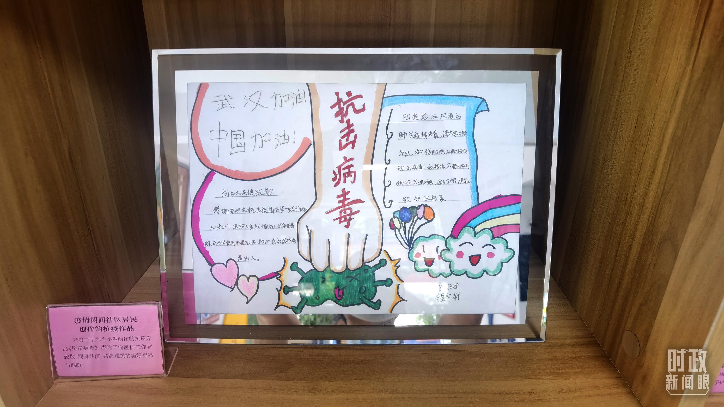 △疫情期間,社區居民創作的抗疫主題作品。(總台央視記者馬立飛拍攝)