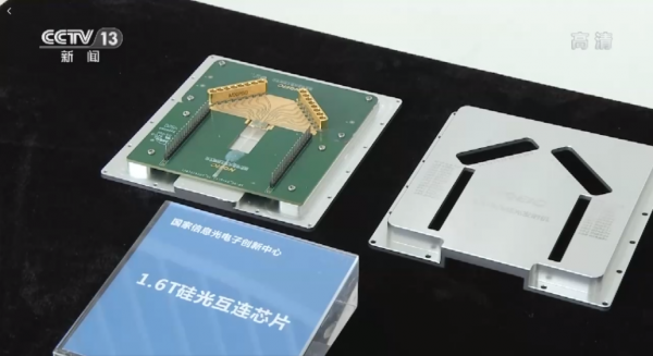 (1.6T矽光互連芯片,來源:央視新聞公眾(zhong) 號,總台央視記者黃京輝拍攝)