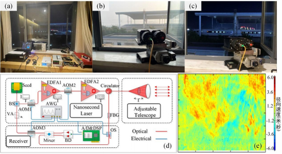 為(wei) 了實現“看的遠、看的細,測的快、測的準”的高時空分辨測風激光雷達,團隊通過在激光光源、光學收發係統、高速數據采集電路和數據處理算法上對激光雷達進行全麵優(you) 化,並在時頻分析、脈衝(chong) 編碼基礎上提出一種新的反演算法,大大提高了風場反演精度和穩健性,最終實現了一套全國產(chan) 化的“產(chan) 品級”測試樣機。