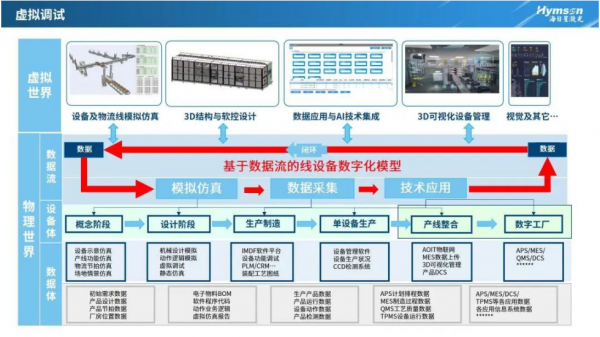 基於(yu) 數字化模型,打通方案設計,研發設計,自動化虛擬調試、生產(chan) 調試過程的數據流,實現數據孿生可視化。