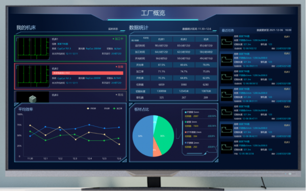 通過部署【智聯工廠Lite】,一個(ge) 看板滾動展示車間所有機床實時狀態,輕鬆實現了車間生產(chan) 信息化,透明化。