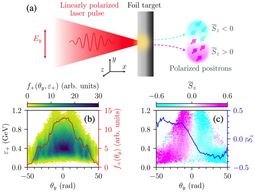 自旋極化的正電子在高能物理,材料物理和實驗室天體(ti) 物理等領域具有廣泛的用途。目前,傳(chuan) 統極化正電子源是基於(yu) Bethe-Heitler機製通過圓偏振伽馬光或縱向極化電子轟擊高Z固體(ti) 靶實現的,但是單發的正電子產(chan) 額隻有飛庫量級(10-15庫侖(lun) ),難以滿足未來正負電子對撞機所需的納庫(10-9庫侖(lun) )以及極化正負電子等離子體(ti) 物理研究中的要求。如何獲得大電量和高密度的極化正電子仍然是一個(ge) 巨大的挑戰。