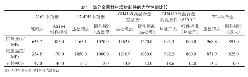 世界範圍內(nei) 增材製造相關(guan) 的新工藝、新原理、新材料、新應用不斷湧現,4D打印、空間3D打印、電子3D打印、細胞3D打印、微納3D打印等新概念層出不窮。針對工程塑料、陶瓷、樹脂基纖維增強複合材料等的增材製造技術逐漸成熟,適用材料的種類與(yu) 應用範圍有所拓展,典型金屬增材製造結構的力學性能趨於(yu) 穩定甚至部分超過鍛件性能(見表1)。高熵非晶合金等新種類合金材料的成分設計、材料基因組設計、多材料功能梯度結構、超材料結構、仿生材料及其結構、具有電磁屏蔽功能的複合材料結構、材料結構功能一體(ti) 化設計、3D打印納米結構、軸向立體(ti) 光刻打印、4D 打印智能材料、活體(ti) 細胞打印、極端環境下的增材製造及應用等創新型、交叉性技術研究進展明顯。無支承金屬成形、大幅麵高能束密集陣列區域化選區熔化金屬(或燒結尼龍)成型、金屬摩擦沉積製造、混合製造、多機器人協作的大尺寸結構的增材製造等先進成形工藝獲得突破。增材製件長周期服役的顯微組織演變規律、人工智能檢測成形過程缺陷、機器學習(xi) 改進材料成分增強綜合性能、耐高溫合金材料組織 ‒ 性能的熱處理調控工藝等前沿基礎研究成果豐(feng) 富。