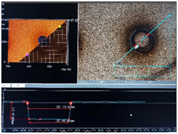 圖3 | 金相顯微鏡所攝的銅底層照片 圖4 | 用3D輪廓掃描儀(yi) 測試去除深度及孔底平整性