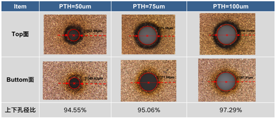 圖2 | 華工激光紫外高速鑽孔設備通孔效果及孔徑大小展示