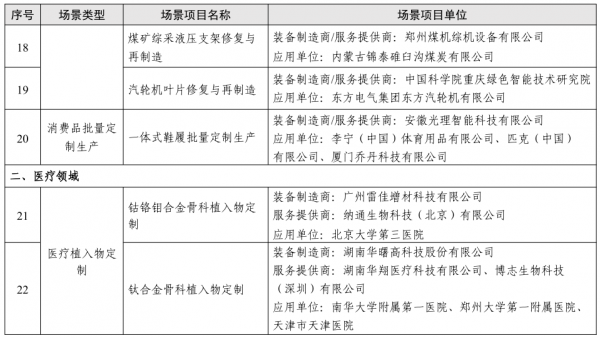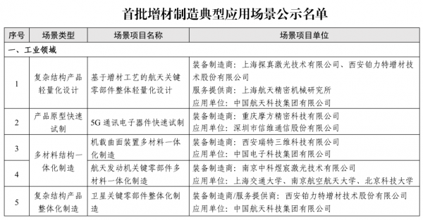 8月2日,材料學網注意到工信部網站公布了首批增材製造典型應用場景名單。