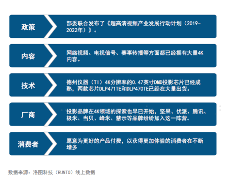 近日,洛圖科技發布激光投影市場分析報告。數據顯示,2022上半年中長焦激光市場參與(yu) 者數量增多, Vidda、當貝、光峰、愛普生等品牌針對家用和商用場景發布多款產(chan) 品,上半年銷量即達到去年全年水平;而在細分場景領域,在政策、內(nei) 容、技術、廠商、消費者的共同驅動下,4K已經是高端投影產(chan) 品趨勢中最確定的一個(ge) 方向。