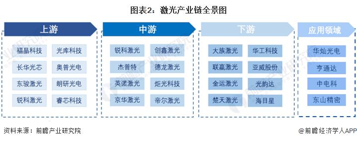 激光產(chan) 業(ye) 鏈全景圖:產(chan) 業(ye) 鏈企業(ye) 整體(ti) 競爭(zheng) 力較強