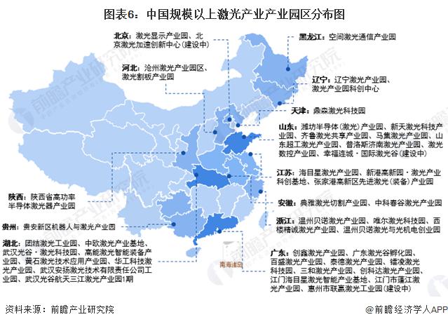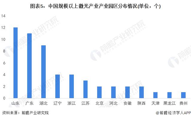 激光產(chan) 業(ye) 產(chan) 業(ye) 園區分布圖:我國激光產(chan) 業(ye) 園區集中在魯、粵、鄂