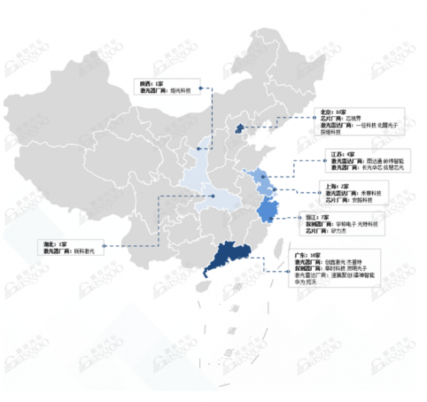 激光雷達產(chan) 業(ye) 鏈區域熱力地圖:北京、廣東(dong) 為(wei) 產(chan) 業(ye) 主要集群地