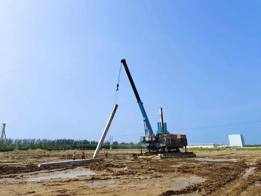 除了疫情和高溫影響外,該項目在施工期間還受到了雨季和汛期等因素影響。“建築施工時會(hui) 對地基進行打樁,由於(yu) 現場土地是沙土層,雨天過後含水量高,打樁時會(hui) 導致許多地表水上冒,施工難度變大。工人在打樁時我們(men) 就進行人工排水,盡量把樁基盡快做好。”睢寧縣建築工程公司副經理閆宗表示。