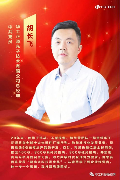 “荊楚楷模”是由省委宣傳(chuan) 部、省文明辦共同組織,對事跡發生在湖北或湖北籍的具有鮮明時代性、先進性、示範性的先進個(ge) 人或群體(ti) 授予的省級榮譽稱號,旨在發揮榜樣力量,在全社會(hui) 樹立精神標杆。 作為(wei) 在華工科技成長起來的青年一代,胡長飛帶領團隊先後承擔國家、省、部級重大科技攻關(guan) 項目10餘(yu) 項、完成自主科技創新項目20餘(yu) 項。麵對光通信行業(ye) 激烈的產(chan) 品迭代競爭(zheng) ,他不僅(jin) 率先在國內(nei) 推動5G光模塊產(chan) 品的研發交付,市場份額穩居全球前列,推出400G、800G係列光模塊、800G矽光模塊,並實現高端光芯片的自主可控,助力數字時代全球算力需求。此次上榜“荊楚楷模”人物榜單,不僅(jin) 是對以胡長飛為(wei) 代表的華工科技有為(wei) 青年的鼓勵與(yu) 肯定,還展示了華工科技人在踐行網絡強國夢的征程上的奮進風采。 未來,華工科技將繼續深入實施“創新至上”發展戰略,強化“高精尖”人才引進與(yu) 培養(yang) ,加大新產(chan) 品、新技術預研能力,為(wei) 湖北光電子信息產(chan) 業(ye) 發展貢獻創新力量。