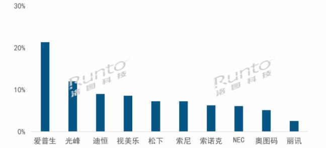 fun88官网平台投影市場應用場景出貨量占比(數據來源:洛圖科技(RUNTO), 單位:%)