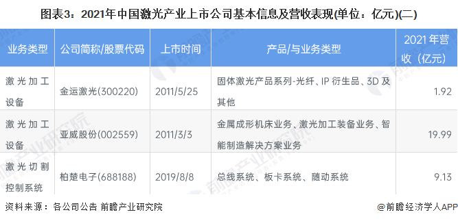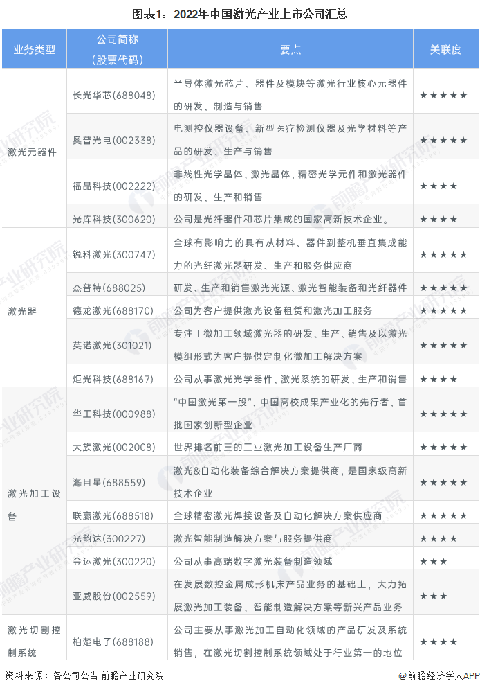 2、激光產(chan) 業(ye) 上市公司業(ye) 務布局對比