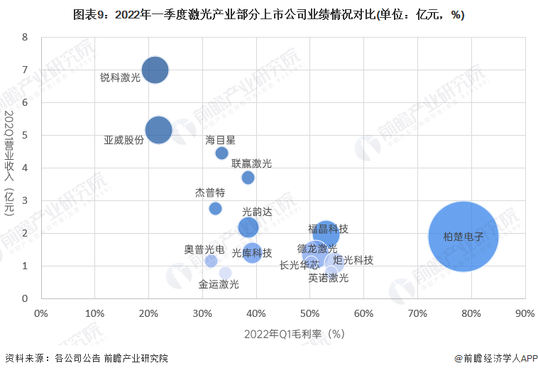 激光產(chan) 業(ye) 相關(guan) 上市公司較多,激光元器件企業(ye) 具備較好的競爭(zheng) 優(you) 勢,那些原本從(cong) 事激光器生產(chan) 和銷售的企業(ye) 正在往下遊激光加工設備和激光應用解決(jue) 方案領域拓展。