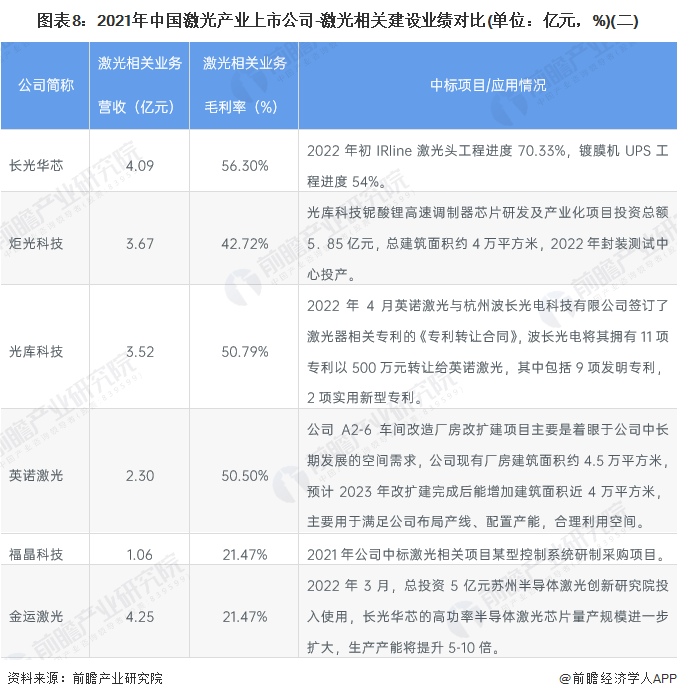 3、激光產(chan) 業(ye) 上市公司激光相關(guan) 建設業(ye) 績對比
