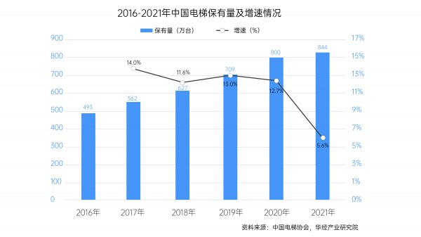 資料顯示,2021年我國電梯保有量為(wei) 844萬(wan) 台,同比增長5.6%。在人口基數較大,人均電梯使用保有率提升,以及人口老齡化加重,老舊小區持續推進電梯新裝等背景下,我國電梯行業(ye) 也迎來了增長的重要契機。