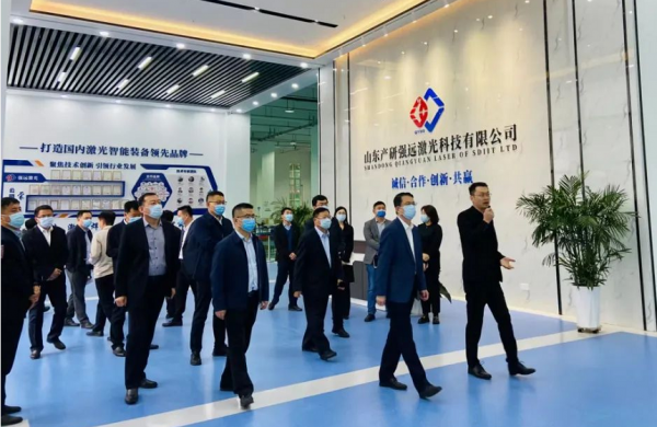 馬新強總經理就項目落地、發展曆程、核心技術、產(chan) 品市場推廣及近期取得成果進行了詳細介紹。崔憲奎一行先後在公司展廳、生產(chan) 車間、裝配製造室等場地參觀指導,對公司激光清洗技術與(yu) 相關(guan) 產(chan) 品進行了詳細了解,項目落地後積極開展的各項工作得到了各位領導的高度認可,對公司相關(guan) 產(chan) 品技術的先進性表示充分肯定。並指出強遠激光作為(wei) 聊城市高新區引進的高新技術企業(ye) ,有著深厚的研發背景和良好的發展平台,通過積極拓展激光清洗、激光焊接技術及市場,帶動聊城當地激光產(chan) 業(ye) 鏈發展。
