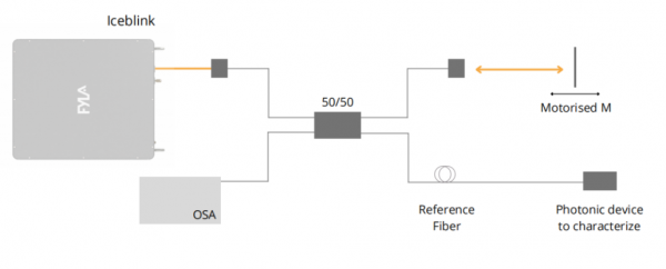 該裝置展示了FYLA Iceblink超連續激光是如何發射進入光纖寬耦合器和帶有電動鏡的自由空間長度可調臂的。