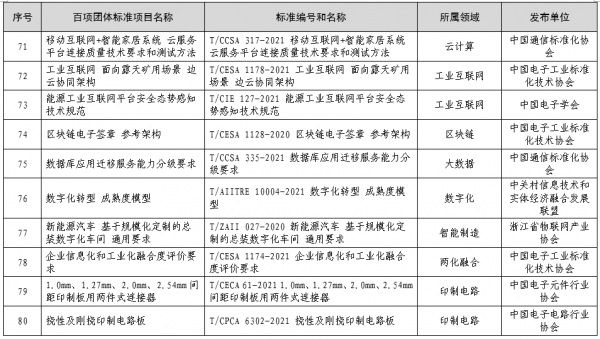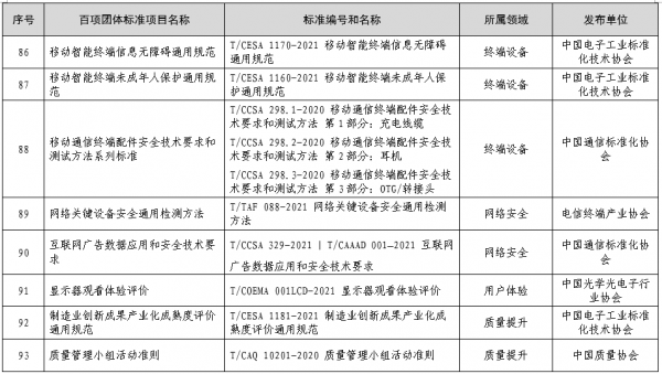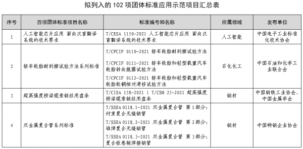 按照《工業(ye) 和信息化部辦公廳關(guan) 於(yu) 開展2022年百項團體(ti) 標準應用示範項目申報工作的通知》(工信廳科函〔2022〕130號)的程序和要求,經社會(hui) 團體(ti) 申請、地方或行業(ye) 推薦、項目初審、技術審查、專(zhuan) 家評審等環節,擬將《人工智能芯片應用 麵向漢盲翻譯係統的技術要求》等102項團體(ti) 標準列入2022年百項團體(ti) 標準應用示範項目,現予以公示。如有異議,請於(yu) 12月1日前反饋至科技司(標準處),電子郵件發送至KJBZ@miit.gov.cn(郵件主題注明:2022年百項團體(ti) 標準應用示範項目公示反饋)。 地址:北京市西長安街13號 工業(ye) 和信息化部科技司 郵編:100804 聯係電話:010-68205241 公示時間:2022年11月2日-2022年12月1日 擬列入的102項團體(ti) 標準應用示範項目匯總表 工業(ye) 和信息化部科技司 2022年11月2日