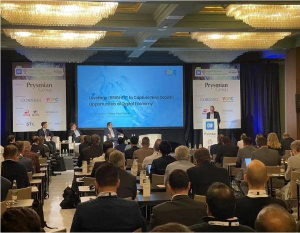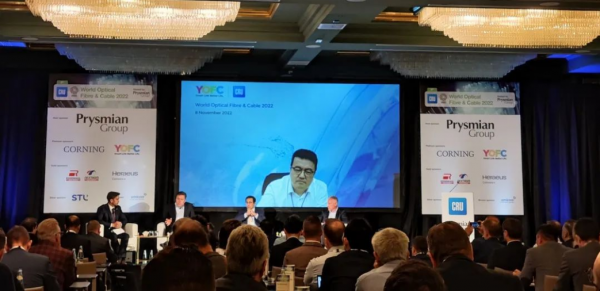作為(wei) 全球領先的光通信企業(ye) ,同時也是世界光纖光纜大會(hui) 多年來的合作夥(huo) 伴及主要讚助商,長飛光纖光纜股份有限公司(以下簡稱:“長飛公司”,股票代碼:601869.SH、06869.HK)今年繼續參與(yu) 這一全球性的行業(ye) 盛會(hui) 。11月8日,長飛公司執行董事兼總裁莊丹受邀與(yu) 歐洲普睿司曼、美國康寧等國際巨頭高層進行圓桌論壇,暢談行業(ye) 態勢,共話產(chan) 業(ye) 未來;高級副總裁Jan.Bongaerts代表長飛公司在大會(hui) 上作《構築“BRIGHTS”數字經濟全光底座,迎接行業(ye) 發展新周期》主題演講。