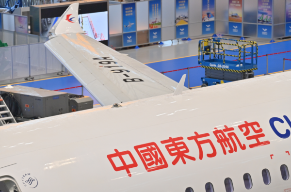 此次交付中國東(dong) 航的C919大型客機有著特殊的塗裝和“身份證號”。在機身前部印有“全球首架”的“中國印”標識和對應英文。 圖片來源公眾(zhong) 號:通航圈 攝影:徐炳南