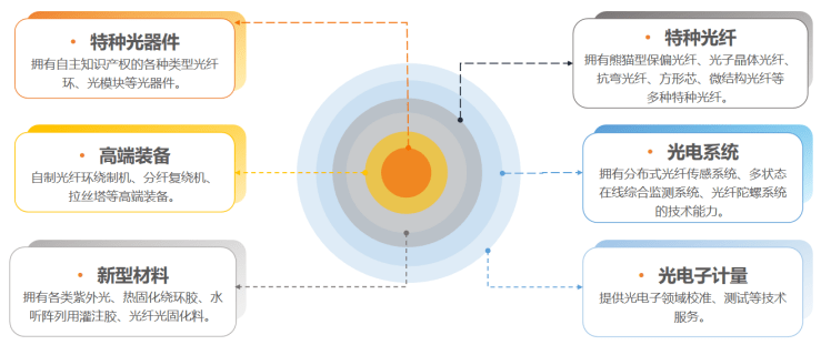 長盈通光電致力於(yu) “5+1聚焦同心圓”的產(chan) 業(ye) 戰略,即以光纖環等特種光器件為(wei) 核心,形成包括光器件相關(guan) 的特種光纖、新型材料、機電設備、光電係統和計量檢測服務在內(nei) 的“5+1聚焦同心圓”產(chan) 業(ye) 戰略布局。