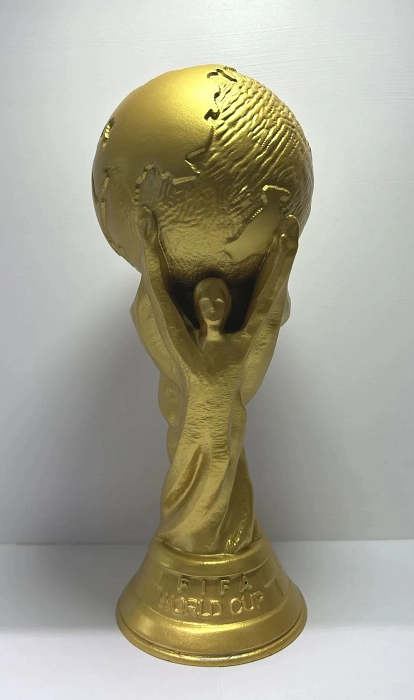 高36.8厘米,重6.175公斤,其中4.97公斤的主體(ti) 由純金鑄造;基座寬13厘米,上麵嵌有“FIFA”4個(ge) 凸起的、用孔雀石雕刻的字母。整個(ge) 獎杯看上去就像兩(liang) 個(ge) 大力士托起了地球,因此得名。 鐳明激光選用鈦合金材料,利用金屬增材製造激光選區熔化技術,一體(ti) 成形快速生產(chan) 出造型獨特、充滿力量感的大力神杯擺件。