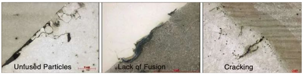 選擇填充金屬的能力取決於相關材料的可用性。通常,線材和粉末材料均適用於各種材料。然而,線材材料往往僅限於常用的焊接合金,而粉末材料往往適用於高合金鋼和特種合金。這是因為粉末生產的主要驅動力之一是基於粉末的增材製造,它對於更奇特的材料具有最高的成本效益比。因此,很難找到粉末形式的碳鋼和低合金鋼,因為這些材料足夠便宜,因此粉末形式的使用對於大多數工業應用來說並不具有成本效益。由於碳鋼和低合金鋼在渦輪機械行業中大量使用,因此基於線材的激光焊接係統往往是更好的選擇,因為這些材料的可用性更高。此外,線材形式的填充金屬通常也比粉末形式便宜。3.缺陷