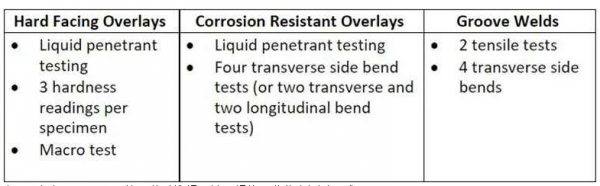 如上所述,當前的ASME BPVC沒有區分LBW-P和LBW-W,也沒有說明Nd:YAG 激光器輸出功率隨時間不可避免的變化。這將需要在未來進行補充,以解決這些過程在典型應用和鑒定方麵的差異。關於工藝鑒定,坡口焊縫將根據ASME BPVC第IX節表QW-451.1進行鑒定。然而,對於轉子修複,LBW修複通常是對表麵損壞進行的,因此將被視為堆焊。ASME BPVC第IX節表QW-453中對堆焊的工藝鑒定要求以及對坡口焊縫的要求可在如下表1中找到。表 1:根據 ASME BPVC第IX節對堆焊和坡口焊的工藝鑒定測試要求。盡管硬麵覆蓋層需要硬度讀數,但ASME並未列出驗收標準。如前所述,大多數轉子維修符合堆焊要求,但除了上述要求外,在某些情況下可能還需要對激光束焊接進行進一步測試。通常,還應考慮軸的關(guan) 鍵設計因素,這取決(jue) 於(yu) 軸的哪一部分需要維修。