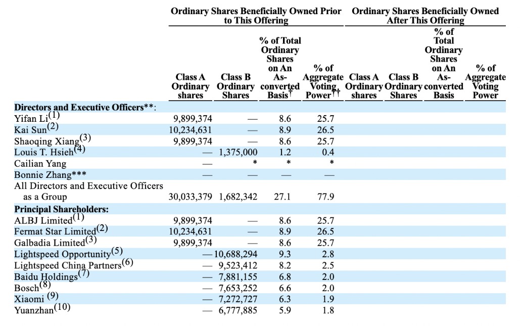 IPO前,禾賽科技共同控股股東(dong) 、實際控製人為(wei) 孫愷、李一帆、向少卿,本次發行前合計直接持股比例為(wei) 30.03%,通過員工持股平台上海樂(le) 以科技合夥(huo) 企業(ye) (有限合夥(huo) )控製公司7.13%的股份,共同合計控製禾賽科技37.16%的股份。