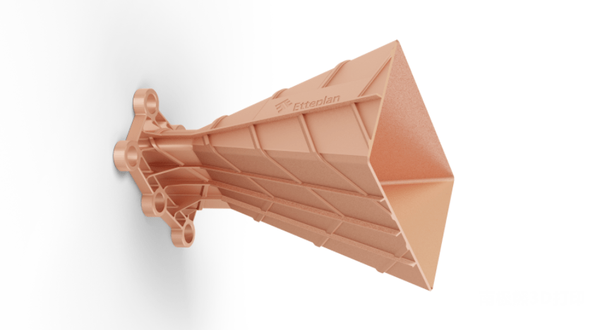 △3D打印的純銅喇叭天線(粘結劑噴射技術製造),圖片來自Digital metal