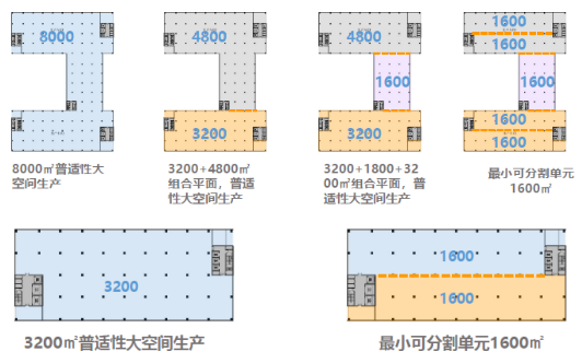 空間可組合使用,龍崗寶龍專(zhuan) 精特新產(chan) 業(ye) 園實行“基準高標準+預留定製化彈性”模式。深圳龍崗寶龍專(zhuan) 精特新產(chan) 業(ye) 園項目在建築設計上充分考慮廠房的個(ge) 性化需求,重點在大平層、高層高、高荷載方麵,采用了多種製造空間的設計,並充分考慮後期建築空間的組合使用。廠房首層層高不低於(yu) 8米、首層地麵荷載不低於(yu) 1.5噸/平方米,1至4層可建設單層麵積6000至10000平方米的大平層,適合布局半導體(ti) 和集成電路的精加工生產(chan) 線,或者5億(yi) 元以上大型企業(ye) 的自動化生產(chan) 線;5層以上單層麵積3000至5000平方米,適合億(yi) 元級企業(ye) 布局超淨車間或無菌車間。