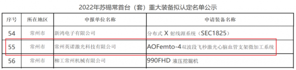 喜報!英諾激光產(chan) 品入選蘇錫常首台(套)重大裝備擬認定名單