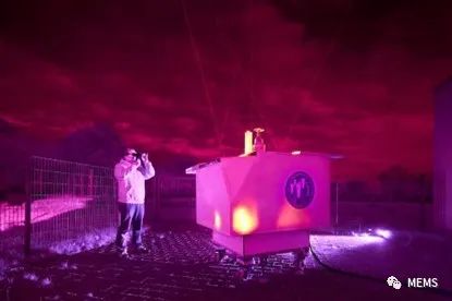 可自主移動的激光雷達(LiDAR)係統向夜空發出五束光,通過四個(ge) 小型望遠鏡和一個(ge) 大型望遠鏡,可探測到100公裏高空的光子,並提供實時氣候數據。