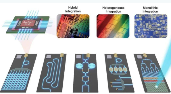 III-V族材料是直接帶隙半導體(ti) ,其發光特性具有先天優(you) 勢。目前,將III-V族材料集成到矽襯底的集成方案主要有三種:混合集成(Hybrid integration)、基於(yu) 晶圓鍵合的異質集成(Heterogeneous integration)和基於(yu) 直接外延生長的單片集成(Monolithic integration)。