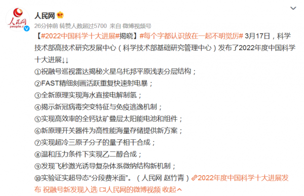 3月17日,科學技術部高技術研究發展中心(基礎研究管理中心)發布了2022年度中國科學十大進展(如上圖所示),祝融號巡視雷達揭秘火星烏(wu) 托邦平原淺表分層結構、FAST精細刻畫活躍重複快速射電暴、全新原理實現海水直接電解製氫等十大進展從(cong) 600餘(yu) 項科學進展推薦中脫穎而出。浙江大學光電科學與(yu) 工程學院教授邱建榮團隊成果“發現飛秒激光誘導複雜體(ti) 係微納結構新機製”成功入選。