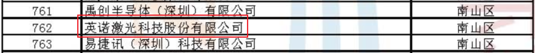 3月15日,深圳市中小企業(ye) 服務局發布了《關(guan) 於(yu) 2022年深圳市專(zhuan) 精特新中小企業(ye) 名單的公示》,英諾激光經過自主申報、各區初審推薦、深圳市中小企業(ye) 服務局複核等程序,從(cong) 眾(zhong) 多參選企業(ye) 中脫穎而出,成功入選“2022年深圳市專(zhuan) 精特新中小企業(ye) 名單”,現已完成公示。