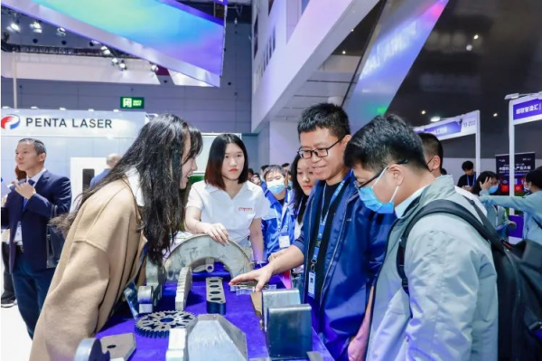 △6萬(wan) 瓦激光切割機的切割樣品吸引觀眾(zhong) 圍觀討論。