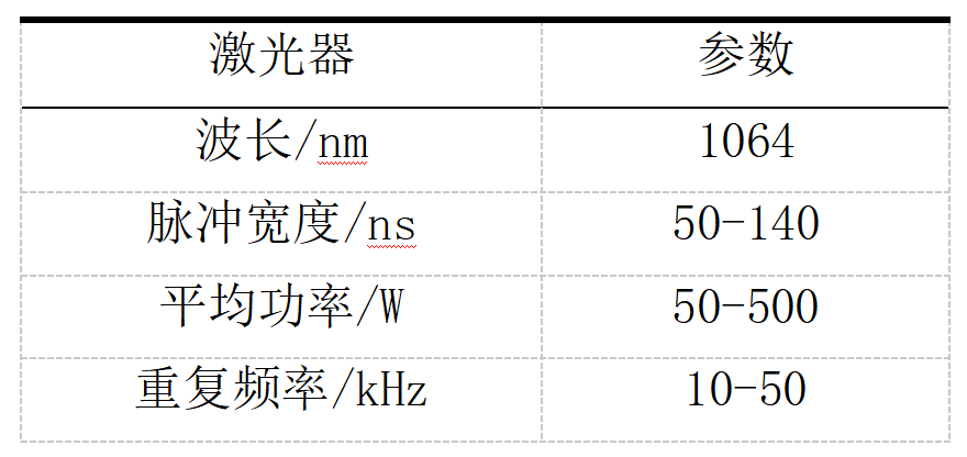 表1 激光器的主要工作參數