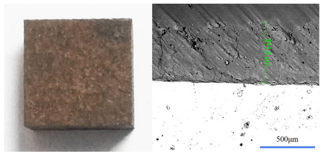 實際清洗過程中,當材料表麵氧化物達到一定溫度時,其表麵會(hui) 出現明顯的燒蝕痕跡,即發生物相之間的轉變:固體(ti) -液體(ti) -固體(ti) ,如圖2所示,證明該機理在清洗過程中起主要作用。