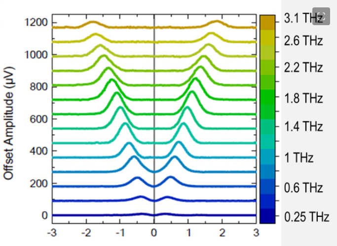 這些研究人員使用了一種獨特的朗道光譜實驗裝置,可在查爾斯庫侖(lun) 實驗室(L2C,CNRS /蒙彼利埃大學)獲得,允許在非常低的能量下測量輻射光學躍遷。因此,他們(men) 能夠觀察到強烈的回旋加速器發射,通過磁場和電子密度在整個(ge) 太赫茲(zi) 頻率範圍內(nei) 通過電場控製進行調節。