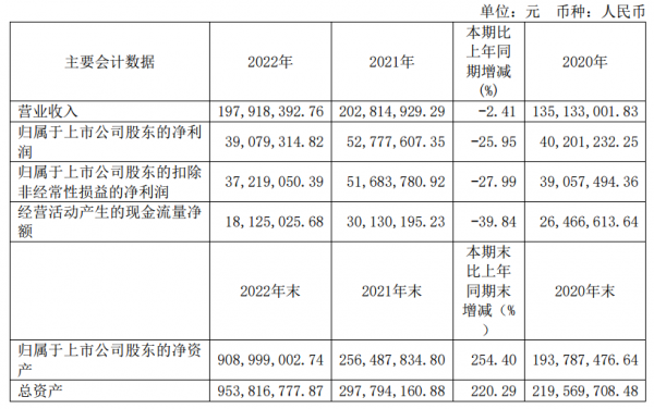 4月13日晚,北京金橙子科技股份有限公司(以下簡稱“金橙子”,股票代碼:688291)公布了2022年年度報告。報告期內(nei) ,公司實現營業(ye) 收入19,791.84萬(wan) 元,同比下降2.41%;實現歸屬於(yu) 母公司所有者的淨利潤3,907.93萬(wan) 元,同比下降25.95%;實現歸屬於(yu) 母公司所有者的扣除非經常性損益的淨利潤3,721.91萬(wan) 元,同比下降27.99%。