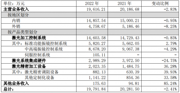激光係統集成硬件產(chan) 品主要包括振鏡、激光器、場鏡及其他主要配備於(yu) 激光加工設備上的各類硬件,主要客戶為(wei) 海外設備集成商。