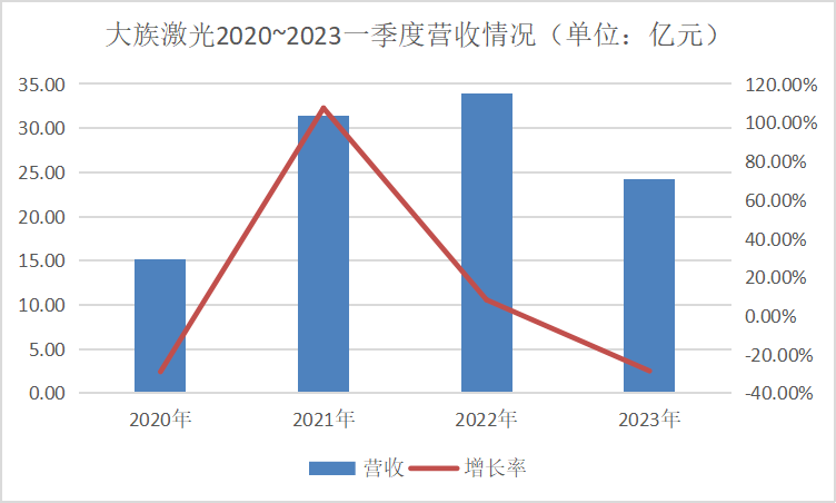 大族激光科技產(chan) 業(ye) 集團股份有限公司(以下簡稱“大族激光”)發布財報稱,2023年第一季度營收24.25億(yi) 元,同比下降28.55%;歸屬於(yu) 上市公司股東(dong) 的淨利潤1.42億(yi) 元,同比下降57.15%。
