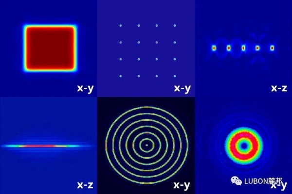 LUBON自有DOE的勻化、分束、多焦點、長焦深、環形光等多種光束整形效果