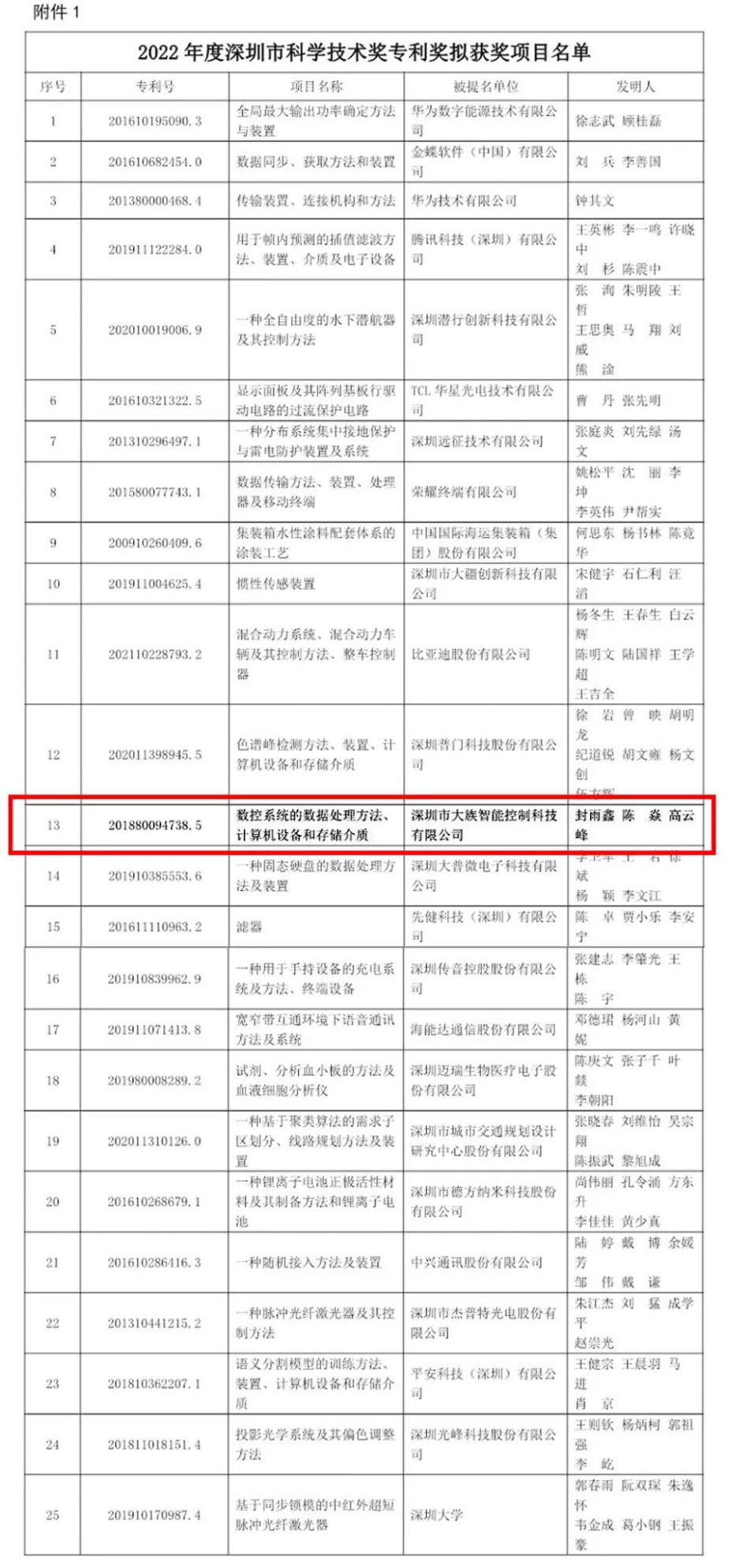 2022年企業(ye) 核心專(zhuan) 利之一“數控係統的數據處理方法、計算機設備和存儲(chu) 介質”因其技術的先進性、新穎性、創造性以及實用性等方麵的突出優(you) 勢,榮獲2022年度深圳市科學技術獎專(zhuan) 利獎。能在高新技術企業(ye) 雲(yun) 集的深圳取得這項含金量十足的獎項,充分體(ti) 現了公司在控製技術和數控係統領域的深厚積累和創新實力。