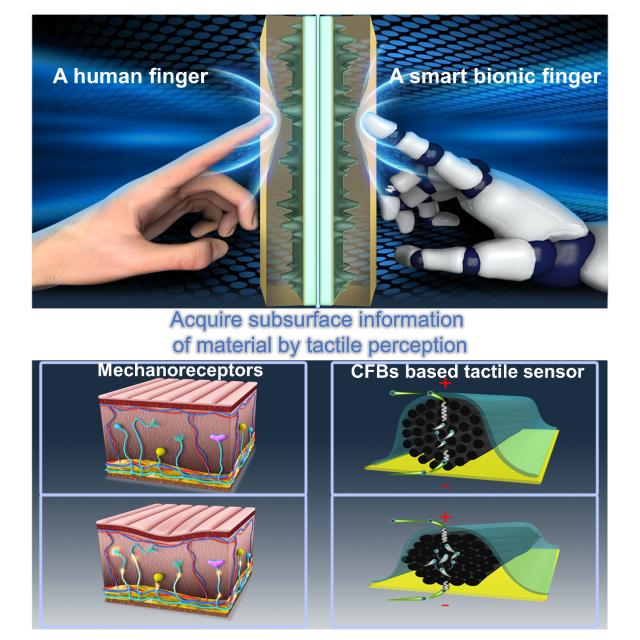 羅堅義(yi) 從(cong) 事柔性傳(chuan) 感材料與(yu) 應用研究已有多年,基於(yu) 自主研發的碳纖維基觸覺傳(chuan) 感器,他帶領的科研團隊已經研發出柔性觸覺傳(chuan) 感器、溫度傳(chuan) 感器、氣壓傳(chuan) 感器和彎曲傳(chuan) 感器等項目應用。受啟發於(yu) 人類手指的高靈敏觸覺感知機製,羅堅義(yi) 從(cong) “模擬”出發,帶領團隊沿著柔性觸覺傳(chuan) 感器的研究開發一路前進,探索創造一個(ge) 具有集成觸覺反饋係統的仿生傳(chuan) 感器。