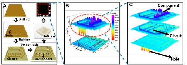 圖為(wei) 智能仿生手指對柔性電子器件內(nei) 部結構的無損檢測及三維輪廓圖重構。受訪者供圖
